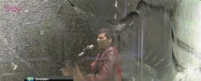 The same's true for Sweden, whose third place (185 points) included only two 12 points, from Estonia and Israel. Good work for a chap of Palestinian and Lebanese descent. Erik Saade had an interesting idea: could he win the song contest from within ... The Cube? No, was the answer, as he broke the fourth wall of the 19 Keys set in another memorable bit of staging. Sweden led at the halfway mark, but this looked a bit artificial, most of their traditional friends had already sent their money.