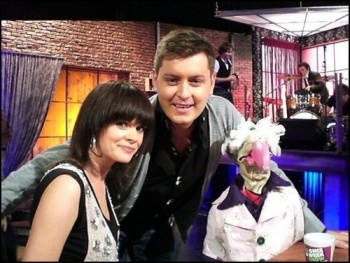 From right: Zoe Salmon, Mr. Giblets, Al Murray, who misheard the instruction to name himself after a meat.