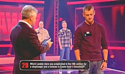 John Marshall is the last tonight, he was runner-up on 25 November, when he took British speedway. He throws in a pass early in the round, ruling out the chance of a tie-break. The contender gives correct answers quickly, but he's dropping one or two questions, and this is going to the wire. In the event, he gets the last question wrong, to finish on 25 (4).