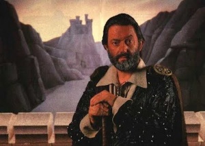 The "uncanny valley" is not a problem that affects the audio productions, of course. Here, a brief description of the room suffices. ("Where am I?" "You're in a stone-clad room, and here's a lady in a floating green dress.") Visual puzzles like the causeway don't work, of course, but we can accommodate a brief scene where the dungeoneer's under attack from fireballs. Maybe less is more, and a suitable backdrop could be projected into a near-empty studio where the player was: see any recent Eurovision Song Contest stage.