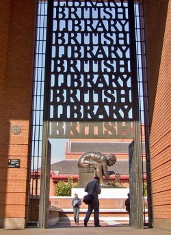 So yes, we left the Euston Tap, picking our way through the fans of Bayern München and Borussia Dortmund, the men's football teams in town for the 1. Bundesliga Finalspiele, which was being held at a building site in Neasden. Working along the Houston Road, we passed a pub, heading for something quintessentially British. Such as, the British Library courtyard. Dodge the tour guides, skip past the readers made pale and pasty by their lack of sunlight. And not check them too closely for a pulse.
