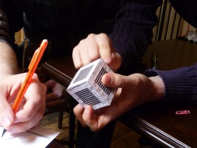 We left the Euston Tap having taken little more than half-an-hour to solve both puzzles and have a glass of cola (the full-strength stuff) and use the facilities. Another of the teams were looking into the cube shortly after we arrived, and were still looking at the cube as we left. Like all the teams, they're entitled to take clues to help them out of a sticky situation. Taking clues is an integral part of the experience, allowing a team to get to the final puzzle, because that's always a work of art.