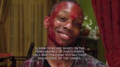 That elimination? It's a faked murder, which will be solved in the next episode. At least the losing contestant goes out in style.