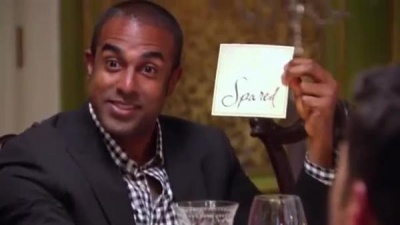 At dinner, the actual method is explained to the viewers and contenders. Cards are handed out, to determine who is and isn't safe from the next elimination. It's a simple process, but they manage to spin it out for six minutes. Longer than the entire puzzle chase earlier. And, with two ad breaks during the exposition and reveal, it's almost a quarter-hour of people's lives. We could have jumped over almost half of the programme and missed nothing of substance.