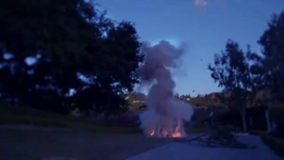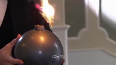 To explain how this works, we're going to explore an episode in full. It begins with one of the team taking a jump in the pool. Hang on, this chap is on fire! That can't be terribly healthy.