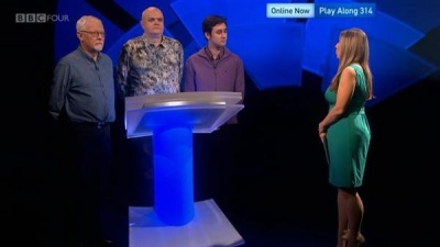 "Missing vowels for five points!" Connections starts that sequence, and the Francophiles think about "Iron ____" things for three points, take "it separated NATO and the Warsaw Pact" for confirmation, and score two. "The Eye of Horus was looking at me in a strange way" says the Fell Walkers. They have: "My toe bleeds, Betty", "Teacher! Teacher!", "Who cooks for you", and having hovered around sitcoms, go for "Foreign translations of UK sitcoms". Good, but not right. "A little bit of bread and no cheese" is the giveaway: transcribed versions of bird calls is a bonus. The Francophiles are asked what birds these are for, and reply, "Tit". We did this joke in series five. 3-0.