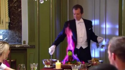 For the remaining viewers, there's a scavenger hunt to watch. Giles the butler brings in a riddle, which leads to a partial clue, which in turn leads to a big clue towards what happened. This is fun, this is exciting, this is mind-taxing. It's five minutes of ace television.