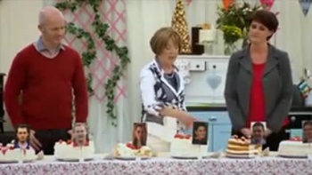 There's a slight change of pace in the show here: Anna is the only outsider, the only person to tease out what the contestants are doing, but we don't get such a tremendous insight this time around. Maybe it's because the technical challenge is significantly more difficult and requires more concentration. Maybe it's because the producers left far less time – the actual cooking is condensed into nine minutes. Certainly this is one place where the UK's two presenters can naturally fill the void: Mel and Sue can naturally talk amongst themselves, Anna looks a bit daft talking to herself.