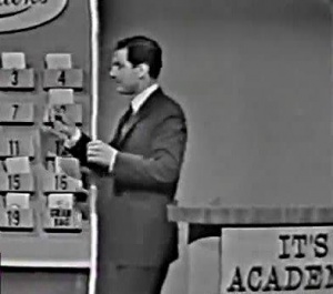 Though it's mostly been shown in Washington and Baltimore – two cities as close as London and Brighton – It's Academic has also been made across the US. The only 1960s edition we've found came from WNBC in New York. Host for the half-hour was Art Bell.