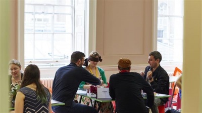 In "The drawing room", drawings from a future production. "The map room" had games in the Fluxus style, taking the familiar and making a challenge out of it. Walk towards a wall, and stop before you walk into it: closest wins. Or build a secret stash of copies of other people's work: largest stash wins. Many of these could fit into other game show formats: some into Taskmaster, others into The Mole.
