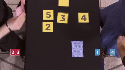And, thanks to number 10 vanishing into the ether, the match ends up as a 28-28 draw. The tiebreak is a shorter version: five vote cards with five score cards between 1 and 7. After three rounds, the magician leads by 7-4. He will win one round but lose the other. The next card is a 3: the last card could be a 1, 6, or 7.