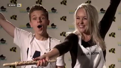 To no-one's surprise, Rasmus and Julia Sofia are appointed winners. Rolling pins for the winners, dirty pinnies for the losers, and Wakky Host is left to fumble around the studio while the credits roll. Only here do we find Nikolaj Stokholm played "Wakky Host", and Mette Hassing was "Sensible Co-host".
