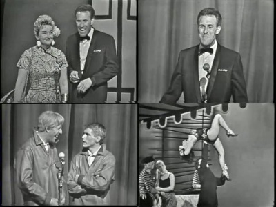 Bruce came to the attention of Val Parnell, whose Sunday Night at the London Palladium was television's top gig. He performed on the show, and quickly became its host. We've watched a sample show from April 1960.