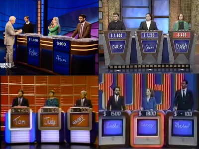 Answers – or questions – are arranged into categories, and get harder as the round progresses. Points for the correct answer, but the jeopardy is that points are deducted for an incorrect answer. After the first board is completed, or time is up, they play Double Jeopardy!, where all the points are doubled. The show finishes with Final Jeopardy!, one answer where the players write down their answers, and however much they want to wager. Highest score after this final round wins the cash amount indicated.