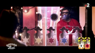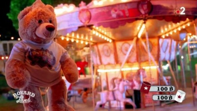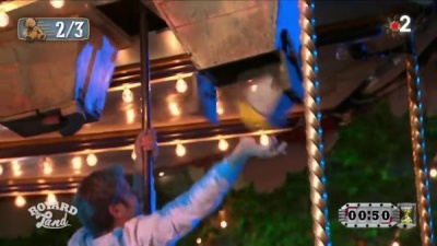 Much of the time is taken up with solo games. The player doing these challenges – and the duels – are chosen by Directeur Willy, and revealed on a sign by the entrance. For the solo games, the reward is a fixed 20 Boyard, but the price of admission varies. The cheap entry is 5 Boyard, allowing a strictly limited time or just the one chance to pass the test. The team can go for the luxury package of 10 Boyard, extending the time or allowing a second candidate to play.