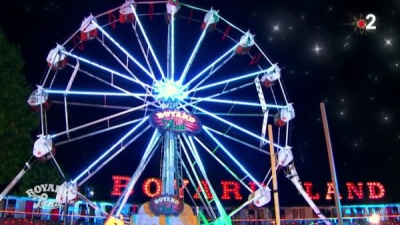 The setting is radically different. Olivier Minne and a group of celebrities are in an amusement park after dark. The whole show is shot at night, a featureless black curtain to throw the larger-than-life park into starker relief.