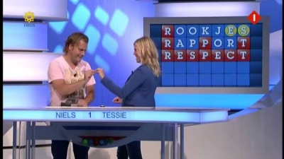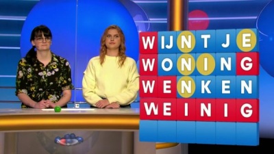 The game still progresses through 5-letter words, then 6-letter words, and finishes with alternating guesses at a 7-letter monster. This causes a lot of pausing, passing, and bonus letters. All main game words are for €15, and add €100 to the day's jackpot, which doesn't roll over. After a team's got their puzzle word for €100, it's replaced by a more difficult example – a twaalf letterwoord, and if they solve it, one of 13 letters appears. Rather naughtily, the show doesn't solve puzzle words left hanging at the end of the game.