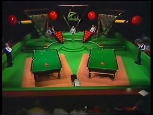 The participants are the contestants, plus an assigned celebrity (for the pilot, Rachael Heyhoe-Flint and George Layton). And an assigned snooker professional (for the pilot, David Taylor and John Parrott). And there are two snooker tables, each professional player breaks on the opponent's table. The referee is Len Ganley, by far the most famous snooker ref of the late 80s.