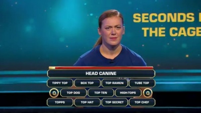 We begin with a round of trivia. Eleven answers in a selected category (for instance, "short phrases containing TOP"). Ten of them will be correct. Each answer is only right once. Errors will be indicated, but the wrong answer and right answer will both remain in play – it'll be an extra distraction for later questions. 45 seconds to solve all ten clues. There's 3 seconds in the cage for each correct answer.