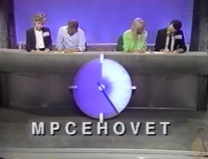 Viewers at home see the words a little bigger than they're shown to the contestants – back in 1990, they hadn't invented high-definition television, and some viewers will still have been watching in black-and-white. It's definitely a fast-moving round, with quite a bit of jeopardy.