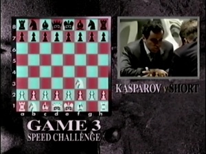 Channel 4's world championship coverage had a lot of time to fill: when the grandmasters are given two hours to make 40 moves, they'll use every second of it, and that leads to an awful lot of dead air and flannel and filling. Channel 4 made a half-hearted attempt to humanise Short and Kasparov, to get us rooting for one or the other based on their personalities. It didn't work, most people who watched live chess were there because they wanted to see the moves, not to learn just how physically fit top players needed to be.
