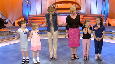 Two families of eight adults and two children (who are in charge, natch) compete in six 'fun-filled' rounds. In the first four rounds, the ickle children get to decide which member of their family they would like to humiliate on national television. Amusingly, the kids write down the name of their 'chosen' player on a card, but the camera zooms in so close that we can see that one of the production team have written down the name of the player the kids must choose in small writing on the card. Oops!